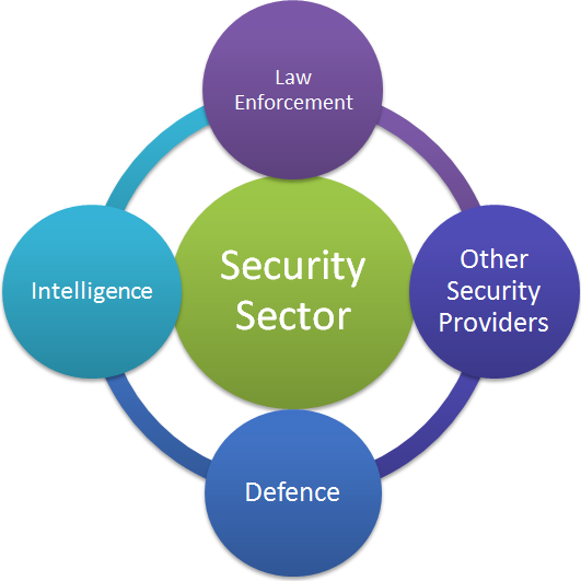 Security Sector includes all security sector institutions and structures whose duty it is to protect the society from crime, disorder and violence. This includes: the armed forces and their civilian staff, law enforcement agencies (community police, investigations, border management services, penitentiary services), and intelligence services, as well as their civilian staff, educational and training establishments and corresponding logistical services. The objective is that the security sector is responsive to public needs and provides security as a public good. The security sector may also be argued to include regulated private entities with highly specified and limited roles related to protection of property and theft prevention.