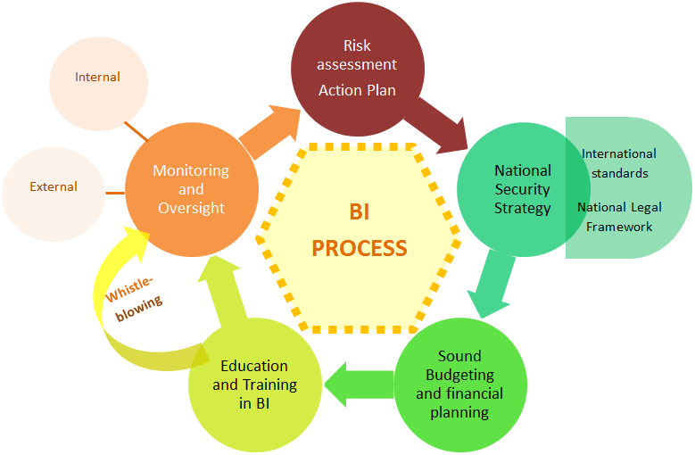 Education plays a crucial role across all levels of the security sector hierarchy. Therefore, a thorough focus on training of the military and civilian personnel of the security sector in BI matters is needed. There are a number of BI programmes and Courses developed by NATO, DCAF, CIDS, Defence Academy of UK, and other organisations and establishments available to military and civilian personnel.